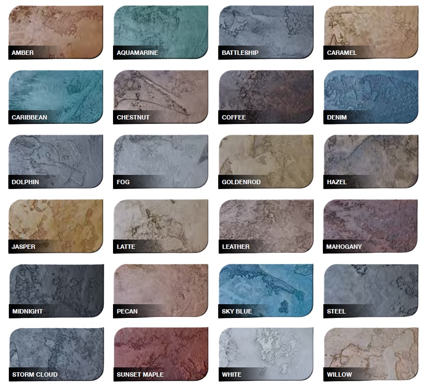 Durável In-Fluence water based semi-transparent concrete stains are used on natural concrete and on overlay systems indoors and outside. The pigments are UV-stable, alkali-resistant, and include an enhanced non-acrylic bonding agent to help eliminate foot prints and roller marks during the clear finish application. In-Fluence stains are applied by pump-up sprayer, HVLP spray, sponge, brush, and other means and product naturally mottled colors that may be further manipulated with diluting and mixing colors. Once dry the surface is ready for a clear finish.