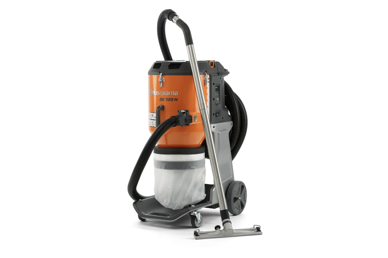 This versatile HEPA dust extractor is compact and easy to transport, yet powerful. It is designed for use with larger hand-held power-tools, floor and hand grinders, shotblasters, scarifiers and more. Its performance and sturdiness make the DE 120 H ideal for demanding, heavy-duty applications. It features a user-friendly HMI and an e-flow function that automatically adjusts air flow while securing high runtime from the batteries. Its high water protection enables fast and efficient decontamination. It also features embedded connectivity allowing you to swiftly monitor location, service and filter status along with other valuable usage data.