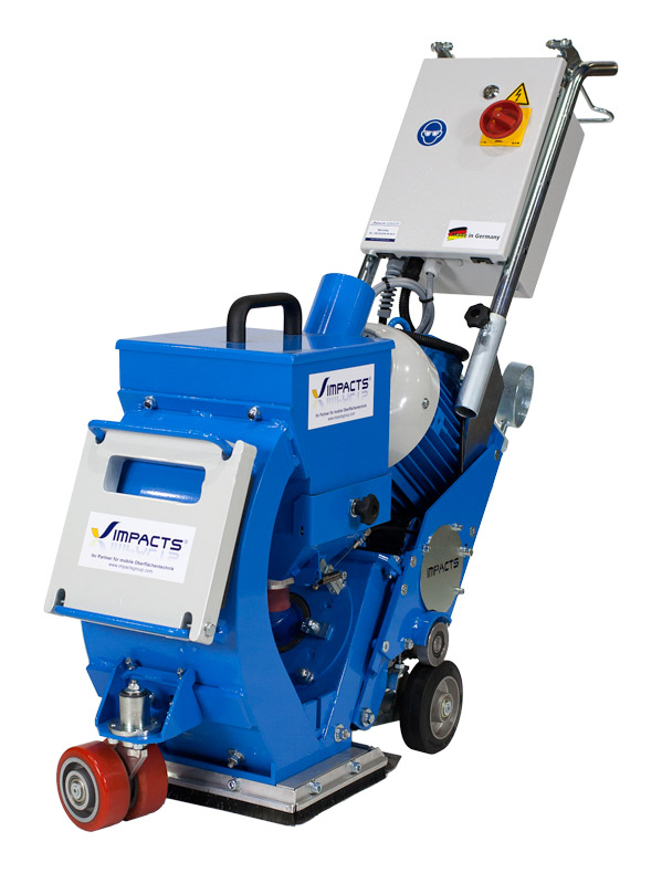The IMPACTS S210E-40R is a very powerful, but compact and lightweight self-propelled surface preparation blast machine. The combination of the powerful wheel motor with an optimized separation system and the variable speed drive motor makes the machine very efficient. The IMPACTS S210E-40R shot blaster is designed to excel high blasting performances on small to medium-sized surface preparation projects.